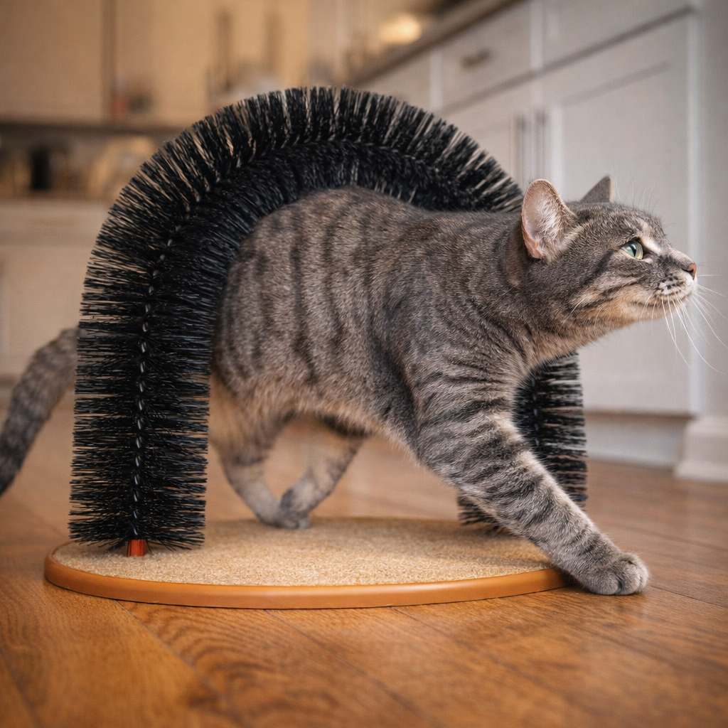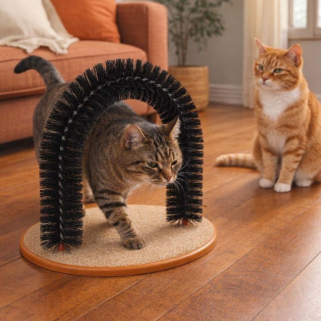 This self-grooming arch turns grooming into a fun, purr-worthy experience—your kitty gets a satisfying scratch while loose fur gets trapped before it takes over your home! 🐾😻