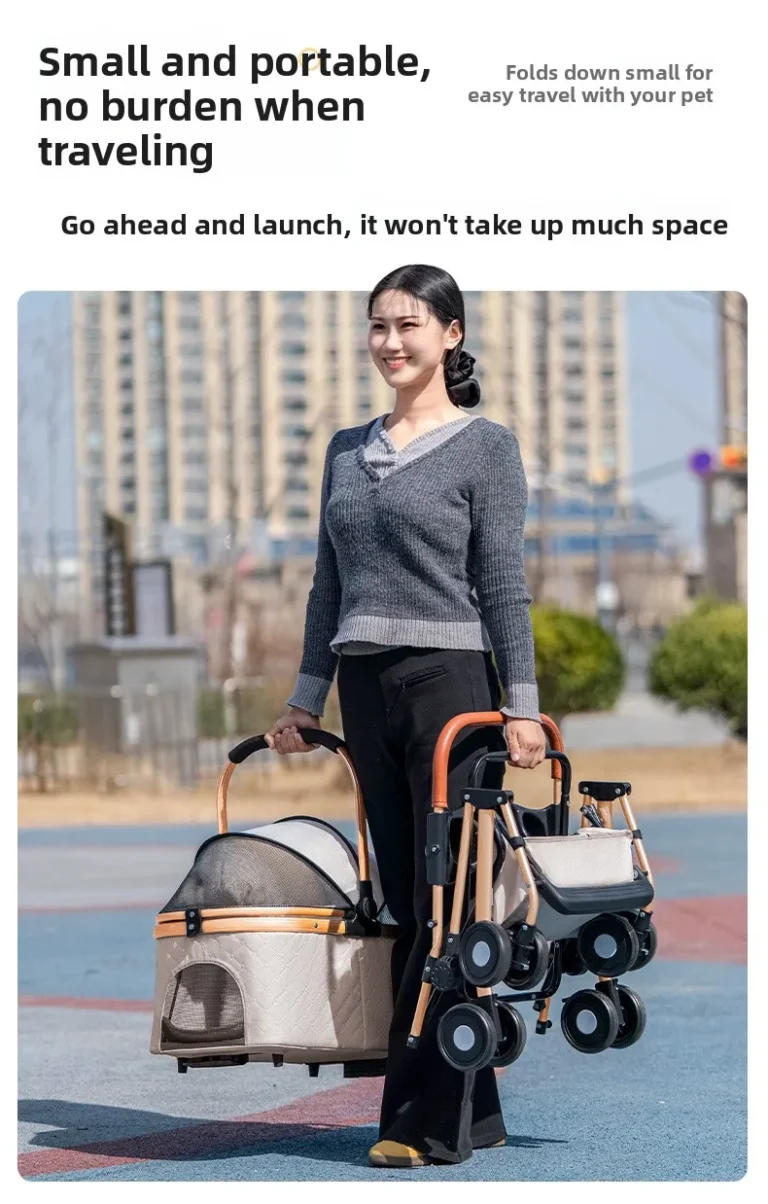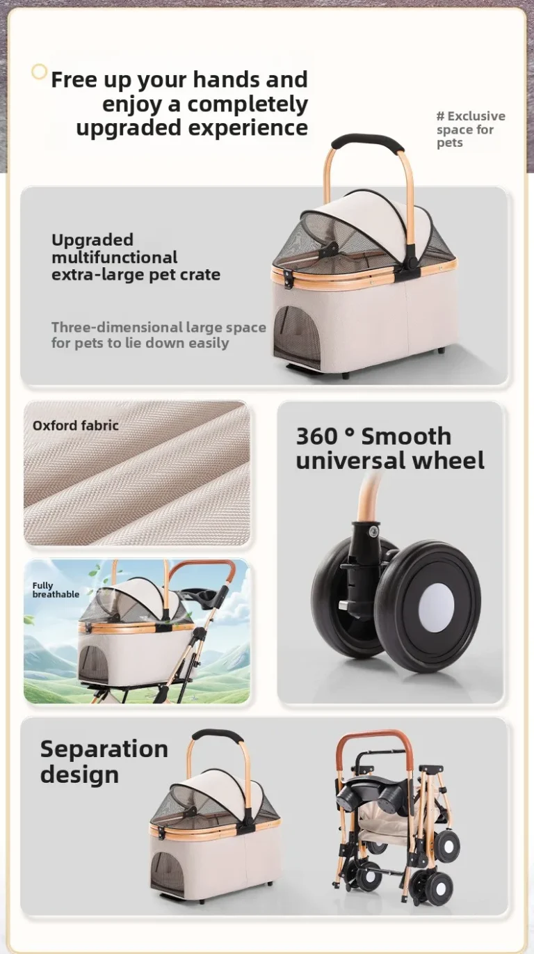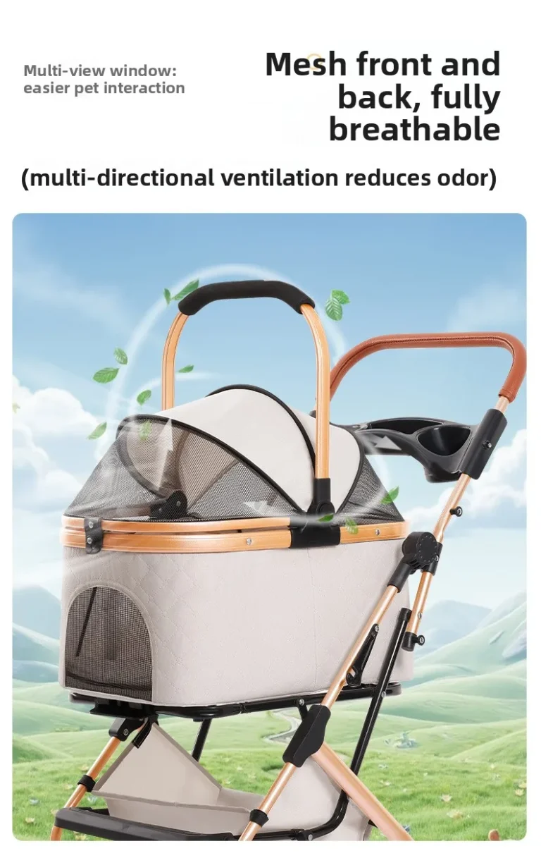 PurrVoyage™ Luxury 3-in-1 Foldable Cat Stroller with Canopy for Adventurous Cats